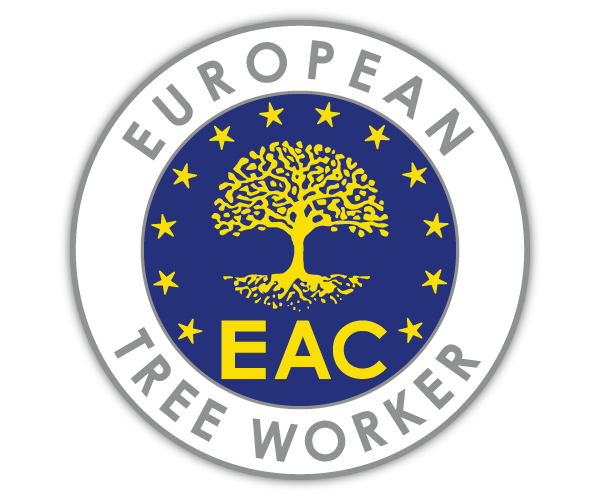 Zertifiziert als „European Tree Worker“ durch den EAC (European Arboricultural Council) für Seilklettertechnik und Hubarbeitsbühnen, sowie FLL-zertifizierter Baumkontrolleur